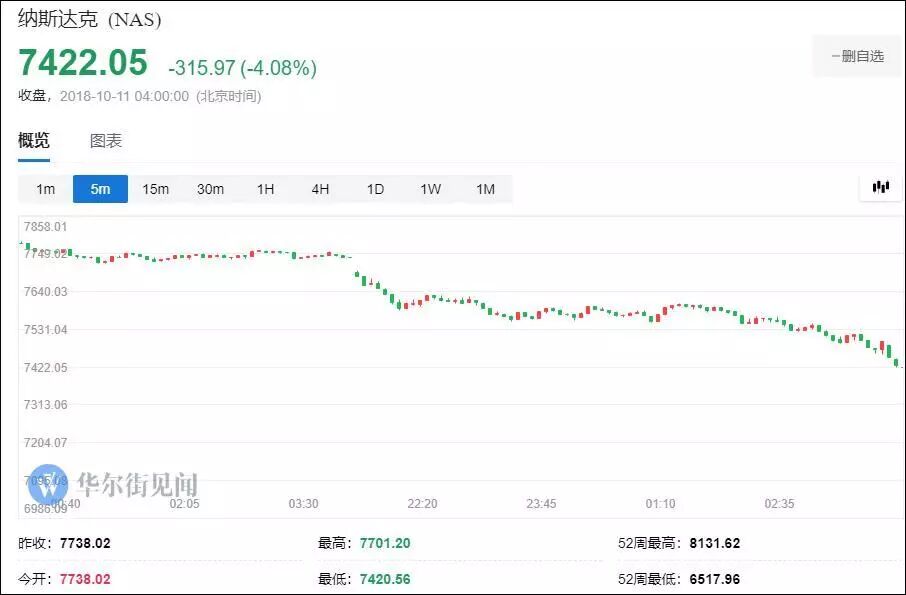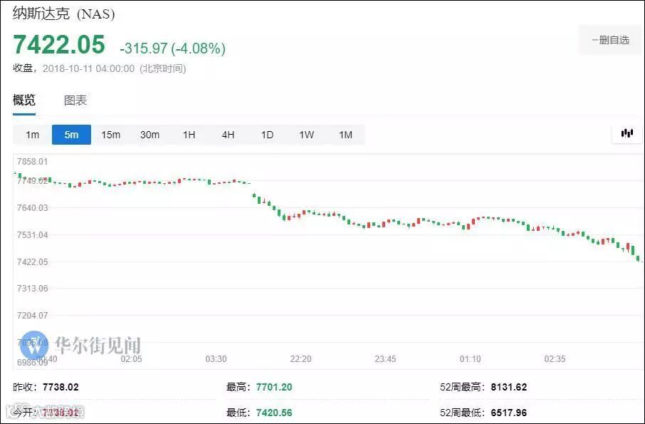 纳斯达克指数报收于7422.05点,跌4.08%,创今年7月3日以来收盘新低。10月以来,纳指跌超6.5%。