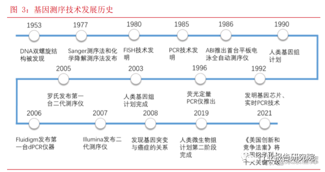 其中 PCR 技术、基因芯片技术和 FISH 技术均已在我国应用多年,较为成 熟。PCR 应用场景广,疾病筛查、科研等多角度都可适用,FISH 技术主要应 用于基因异位的检测,基因芯片过往主要应用基因筛选、环境污染测定等方 面,但是随着第二代基因测序技术的迅速发展,应用空间受到挤压。