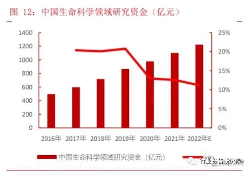 美国同样将发展生物科技提升至战略高度,2022 年 9 月 14 日,白宫举办 “国家生物技术和生物制造计划峰会”,会议承诺发展国内生物经济,加强与 生物技术相关的国防工业基础,包括利用生物学为国防供应链制造产品。在 今年 8 月通过的《芯片与科学法案》中,也出现了生物技术的表述,将加强 生物经济,并帮助推动和保证美国生物技术、生物制造和相关技术的发展。因此,预计全球用于生命科学领域的研究资金将进一步增加,全球生命 科学领域的研究资金投入快速增长,从 2016 年的 1247 亿美元增加到 2020 年 的 1576 亿美元,年复合增长率为 6.0%。中商产业研究院预测,2022 年全球 生命科学领域研究资金投入将达到 1754 亿美元。