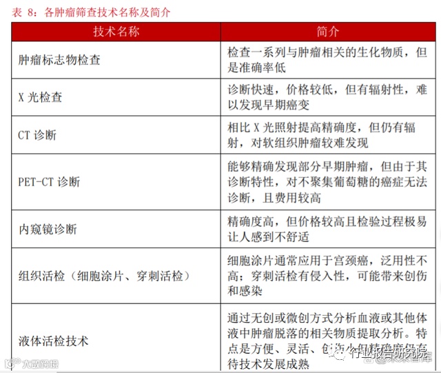 目前肿瘤早筛技术有多种方法,包括肿瘤标志物检查、影像学检查、组 织活检、液体活检技术等。