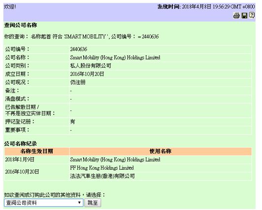 大虾继续查发现,睿驰汽车的全资控制股东是在香港注册的公司,其原来的名称为FF HONG Kong Holdings Limitied,中文名为法法汽车生态(香港)有限公司(以下简称“FF香港”)。