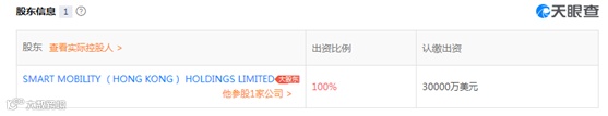 公司股东仅一个,SMART MOBILITY(HONG KONG)HOLDINGS LIMITED,100%控股睿驰。