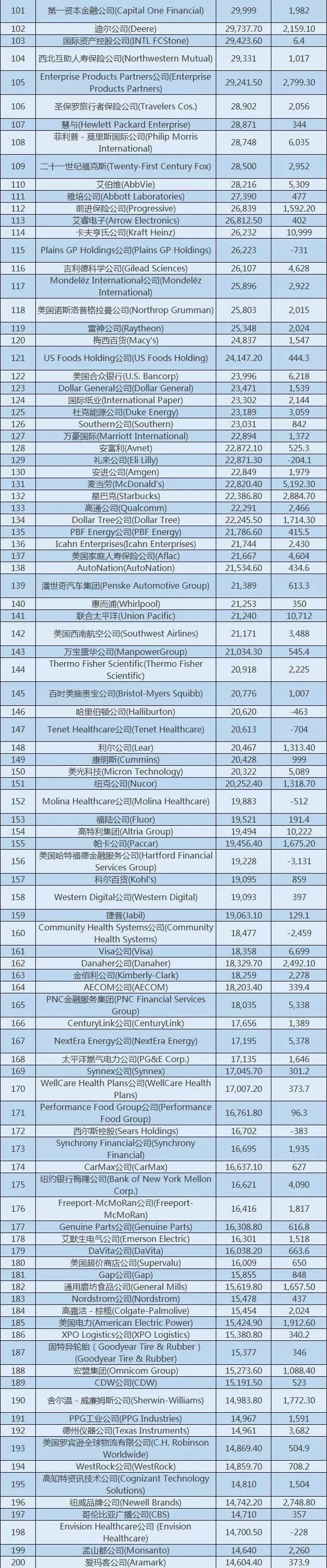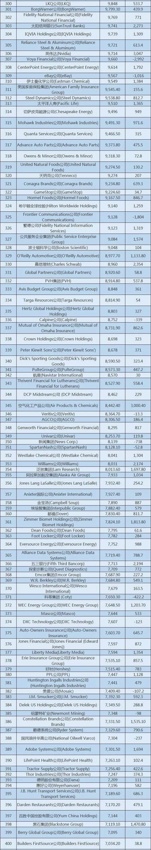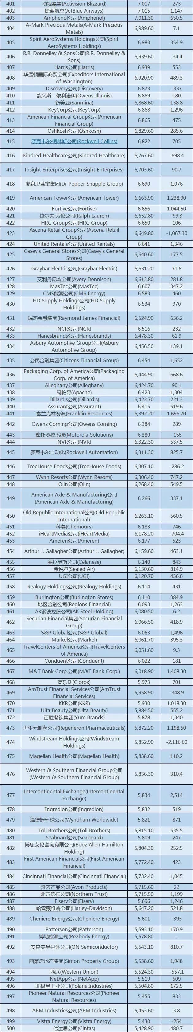 3、值得一提的是生意立足中国的餐饮公司百胜中国排名上升了2位,该公司在美国500强的排名从399位升至397位。今年三月,祖籍福建的华人屈翠容也正式接替潘伟奇成为公司CEO。