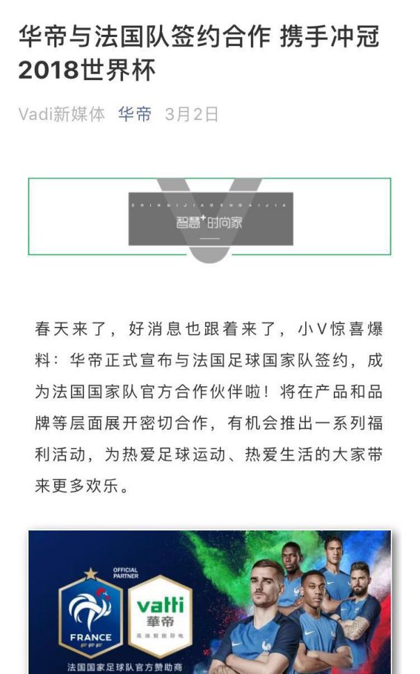 大虾查了查,今年3月初,华帝签约了法国国家足球队,成为其官方赞助商。5月17日,又再次签约法国传奇球星亨利作为品牌代言人。