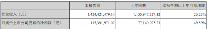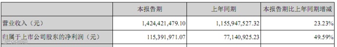 其今年一季度业绩也不错,营收14.24亿元,同比增长23.23%,净利润1.15亿元,同比增长49.59%。