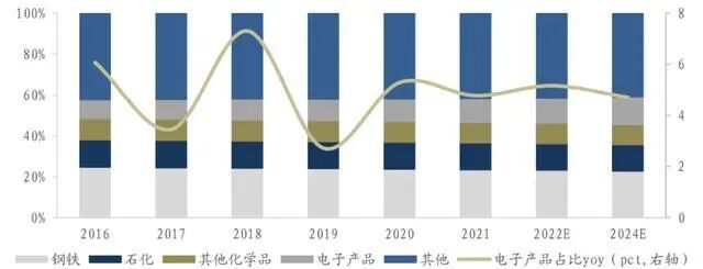传统工业企业对工业气体需求量较大,但对纯度要求较低,常用于炼钢、冶炼、机械工业中的焊接、金热处理。根据前瞻产业研究院统计,钢铁行业是我国工业气体的第一大应用领域,2019年钢铁行业的用气量占比达24%,其次为石化行业,占比13%。电子产品、环保新能源等新型行业对工业气体技术含量要求较高,对气体纯度、杂质率、稳定性都具备高考核界限。近年来随着我国经济结构的调整,半导体、新能源等新兴产业蓬勃发展,电子产品领域的占比从2016年的9.26%提升到了2021年的11.20%,2016-2021年复合增速达15%。未来在国家政策、技术创新等因素的推动下,新型行业在工业气体下游应用中的占比将逐步提升,特种气体需求有望加速提升。