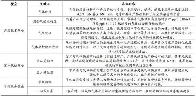 特种气体行业壁垒高,主要体现在产品技术壁垒、客户认证壁垒、营销服务壁垒上。