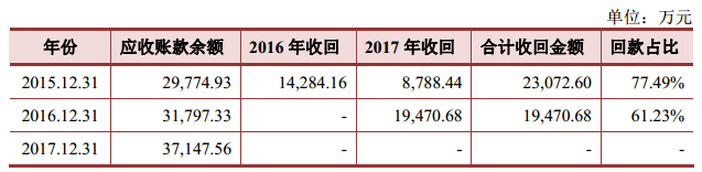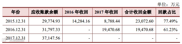 但是应收账款余额却不乐观。2015年末、2016年末和2017年末,公司应收账款净额分别为21,085.29万元、23,422.88万元和30,233.42万元,占各期末流动资产的比例分别为37.77%、36.63%和35.53%。