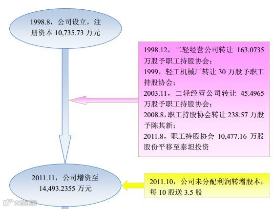 2011 年,为明晰股权,职工持股协会所有出资员工投资新设绍兴泰坦投资股份有限公司,职工持股协会以0元价格将所持有的发行人全部股份转让给泰坦投资。