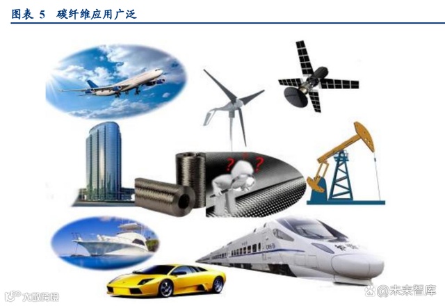 碳纤维的应用领域非常广泛。主要应用在航空航天、风电叶片、体育休闲、压力容器、 碳/碳复合材料、交通建设等领域,并在不同领域碳纤维的使用类型也有所差异。当前全 球小丝束碳纤维行业标准制定权和定价权牢牢掌握在美国、日本企业手中,并且因其用 途的敏感性,国外在小丝束碳纤维出口方面实施严格管制,我国军用领域的突破发展受 到影响。