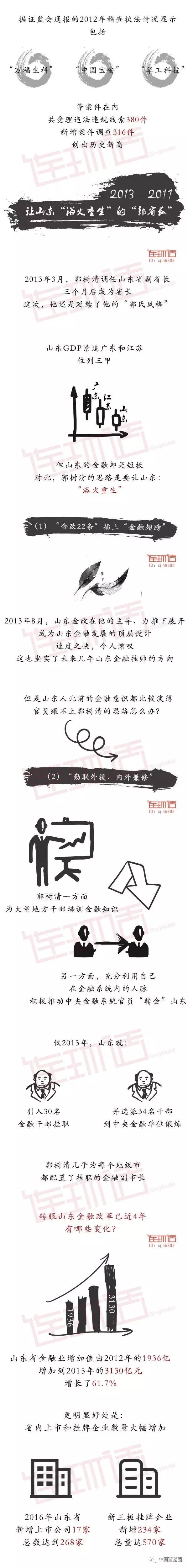 郭树清此前任职证监会500多天时间里,出台了各种通知、文件70余项,开创了“郭氏新政”,也已经摸索出一条改革路径,其中,证监会处级以上干部大范围轮岗在打破利益藩篱的作用功不可没。随后,郭树清将这种人事先行的改革模式带到了山东。