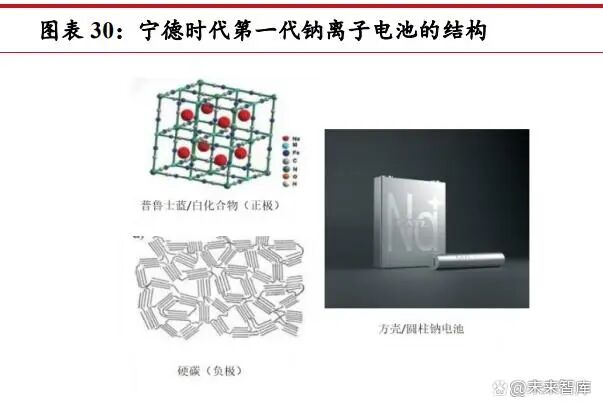 在正极材料方面,采用克容量较高的锰铁普鲁士白材料(160mAh/g),构建高通量材料集 成计算平台,在原子级别对材料进行模拟计算和设计仿真,创新性地对材料体相结构进行电荷 重排,对材料表面进行重新设计,解决了普鲁士白在循环过程中容量快速衰减这一核心难题;在负极材料方面,公司开发了让钠离子快速通行,同时具有独特孔隙结构的硬碳材料 (350mAh/g),其具有克容量高、易脱嵌、优循环的特性。同时公司已布局无负极金属电池技术;在电解液方面,同时开发适配正负极材料的新型独 特电解液;在系统创新方面,开发了 AB 电池系统解决方案,将钠电池和锂电池按一定比例(2:1)进行混搭,通过 BMS 算法精准控制,弥补了钠电现阶段能量密度短板,同时发挥其高功 率、低温性能好的优势。