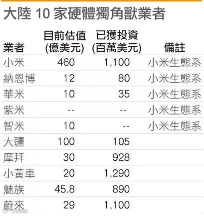 4、 小米:2017年前10月营收突破1000亿RMB,各种版本的获利数字传出,包括 : 2017年3季度获利超过4亿美元, 2017年获利达10亿美元;