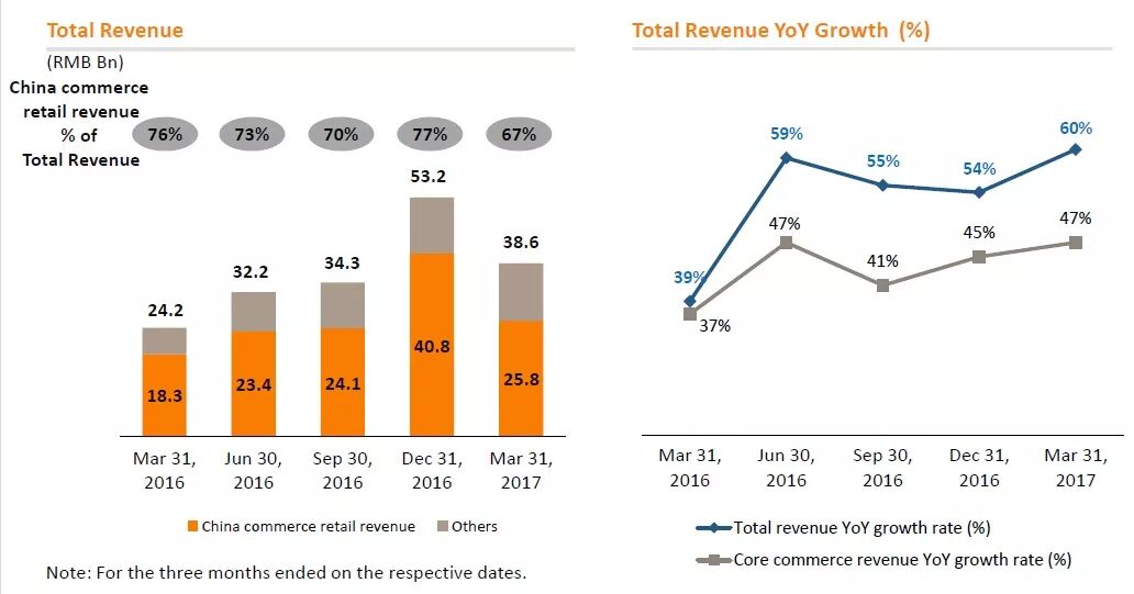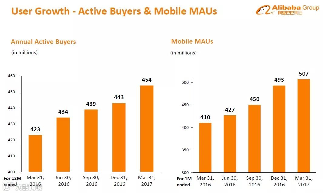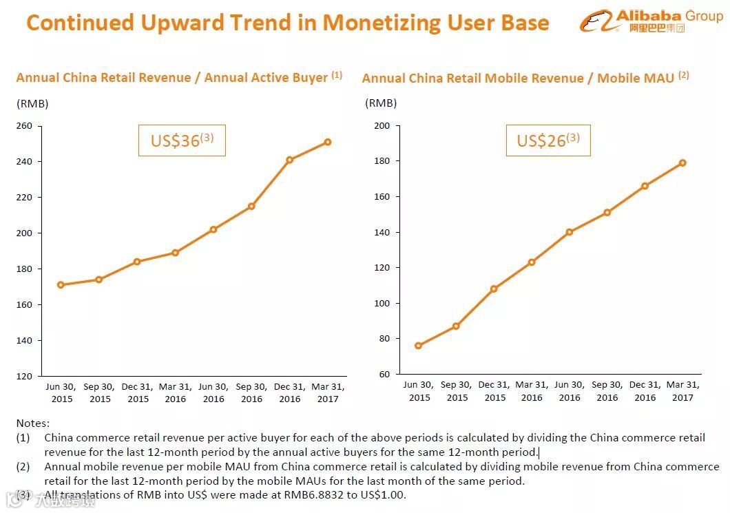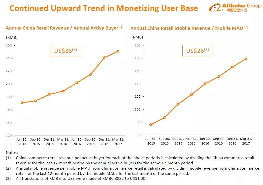再来,就是在中国消费持续增长以及行动消费持续增长的大环境趋势下,消费人数与人均消费数字持续走高,阿里集团体系的各项业务也持续成长。