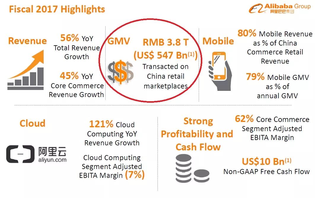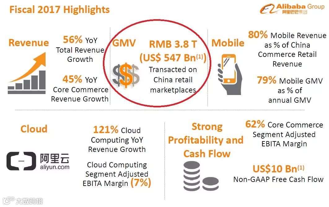 跟随阿里集团业绩的成长,GMV数据(以支付宝结算的交易数字)也跟着持续增长。