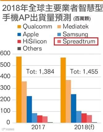 2、 紫光展锐:2016年营收125亿RMB, 2017年光展讯部分营收就有97.5亿RMB;
