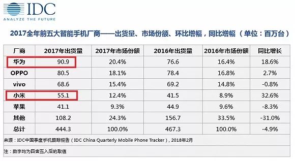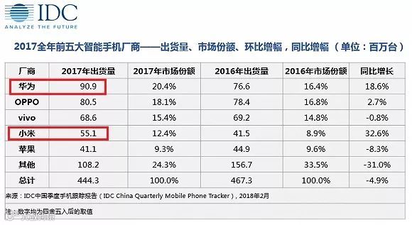 前面的数字是全球市场数字,如果单看中国市场的数字,小米与当今龙头华为的差距,从年度来看, 是3580万支,从季度来看, 是840万支。