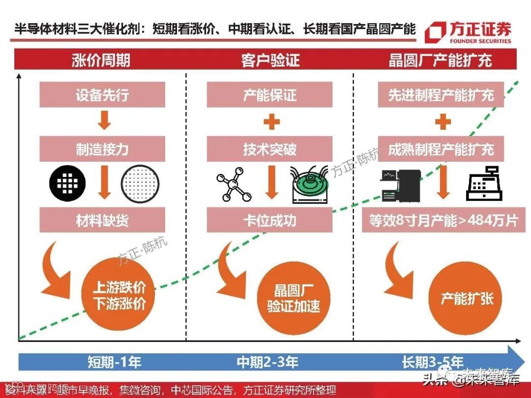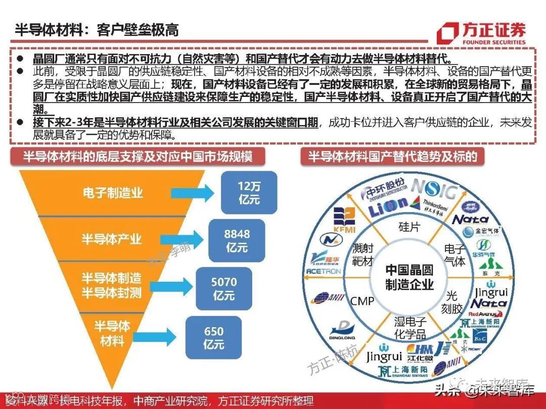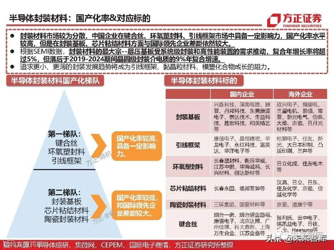我们认为,在中期维度方面,封装材料基于更高的国产化率,能够更早地实现国产替代。同时,国 内封测全球领先,定增扩产明显,下游驱动更为直接。在长期维度方面,半导体制造材料相较于封 装材料拥有更高的壁垒和国产化潜力,所以制造材料的长期成长空间更大。