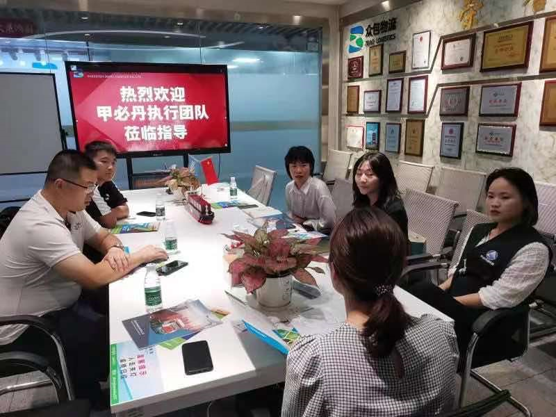 甲必丹执行团队秘书处葛婷与茗佳张晓光、天地通达张诗杰、神驼邓安怡、神驼刘银萍、领航保险陈世美走访会员单位:深圳市集远国际货运代理有限公司。