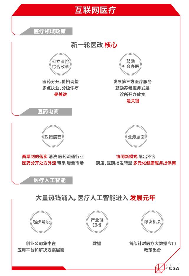 医疗服务的平台属性越来越明晰,高效运营和管理将成为医疗服务机构的核心价值。而数据和服务的结合,特别是人工智能+医疗迈向了新高峰,尤其影像领域。基层医疗崛起。全科和专科诊所走向了中产阶级和普罗大众, 顺应国家医改,引流解脱不堪重负的三甲医院。第三方服务也值得关注。卫计委共批准10类独立设置医疗机构。资本出手了第三方肿瘤病理、影像中心和肾透析等企业。但更多资本尚在观望中。