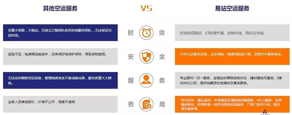广州易站跨境电商有限公司在“一带一路”倡议深入实施和中非经济走廊建设加快推进的背景下诞生。拥有非洲优势航线资源,超强通关能力,先进的信息管理系统,聚集一批具有多年非洲工作经验、专业高效团队,拥有成熟的业务网络。通过海外仓储, 国际空运、国际海运、国际快递、电商供应链等多样化服务,可以满足客人在价格、 舱位、安全、对外贸易和时效等方面的高品质服务需求。承接国家“一带一路”战略,打造中非经贸高速发展的一站式服务平台。