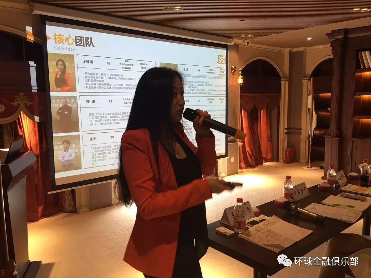 环球金融俱乐部创始人、厚禄投资董事长王姝璎进行开场致辞,并为我司的企业资本服务做了一个详细的说明,将活动气氛推向高潮。随后,消费升级项目路演正式开始。