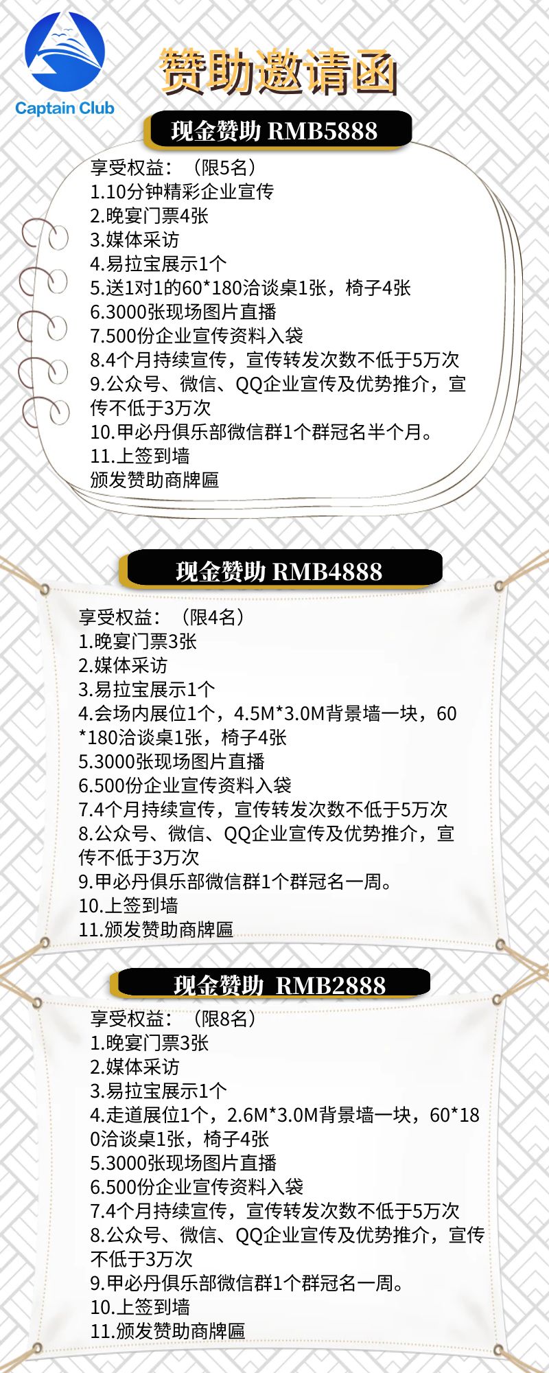 甲必丹会员单位均有一位免费名额(全天1对1交流会论坛+晚餐)