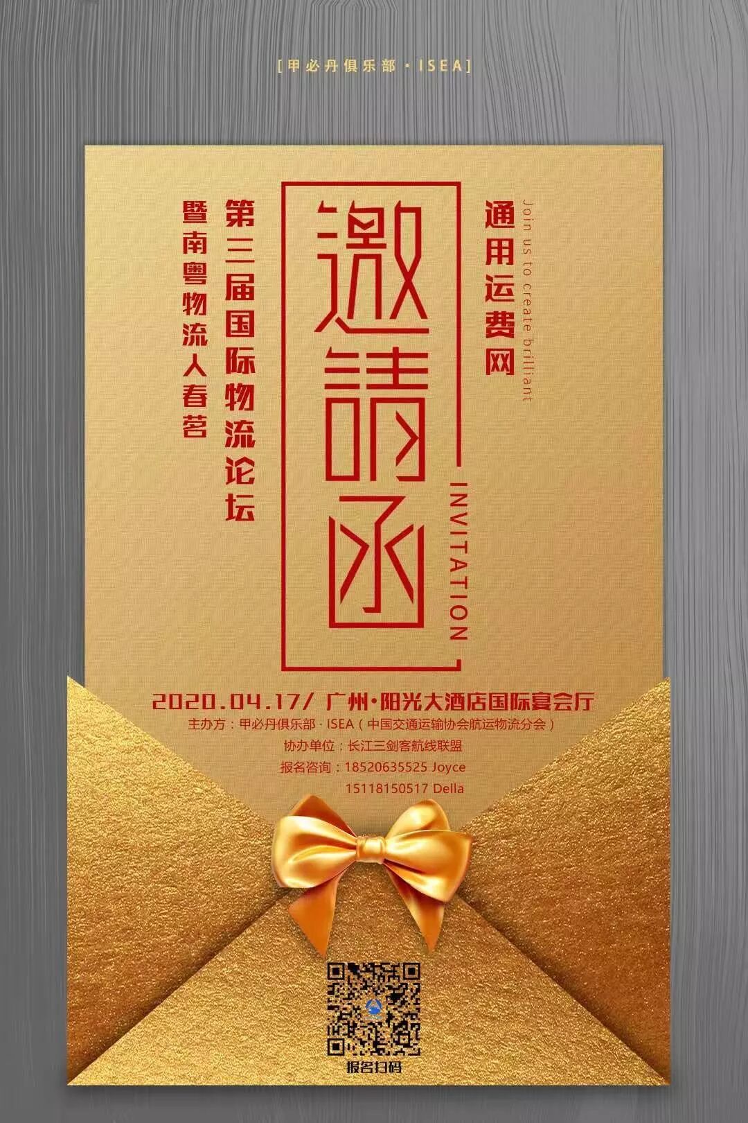我们将于2020年04月17日举办2020年第一场大型会议,通用运费网 ||第三届国际物流论坛暨南粤物流人春茗。现在正在火热报名中......