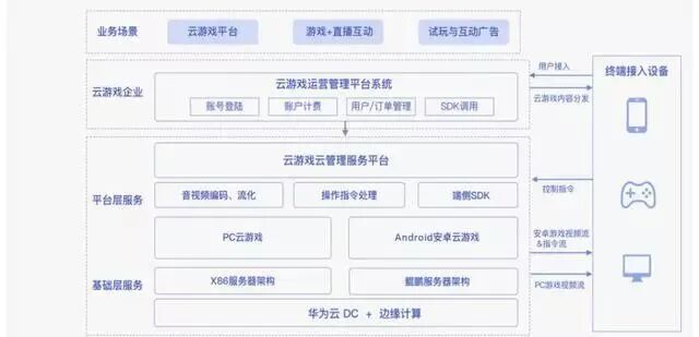 目前国内主流大厂入华为云和腾讯云等采用的是两套并行方案,用基于X86的架构支持PC云游戏,基于ARM服务器阵列支持安卓云游戏,以达到“跨终端”的效果。而创业厂商则受限于成本,大多数采用ARM阵列服务器的解决方案,仅提供安卓云游戏服务。