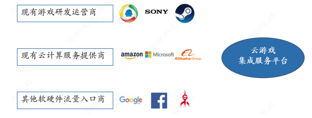 云游戏平台对游戏入口进行整合并将游戏进行分发,同时为用户提供用户入口和用户导入服务。
