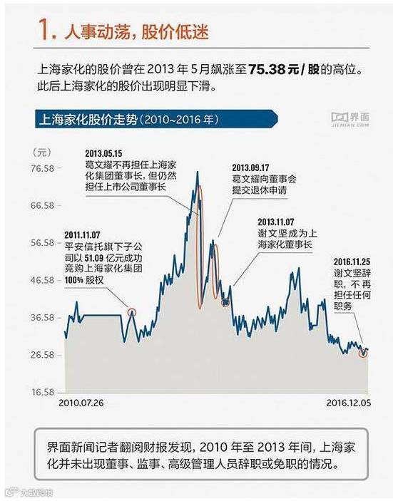 2015年8月时,平安系决定以左手倒右手的方式,让平安人寿以84亿元接手平浦投资手上27.72%的上海家化股权,按每股价格来计算,成本价大约在45.8元左右。