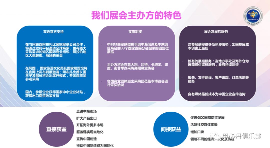 导读:阿联酋(2018)中国品博览会-阿布扎比,等你来,甲必丹俱乐部会员单位参展,俱乐部补贴参展单位参展位费用的10%。