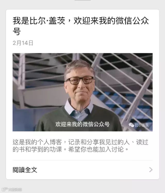 不管基于怎样的原因,比尔·盖茨开通微信公众号都能在一定程度上带给内容行业别具一格的气息。