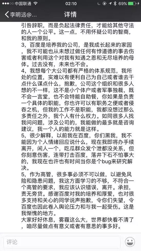 李明远说,“百度是培养我的公司,是我成长起来的佳缘,我不可能也从未想过做任何有悖道德的事去伤害或利用这个对我有知遇之恩和无尽培养的母体。过去没有,未来也不会。”
