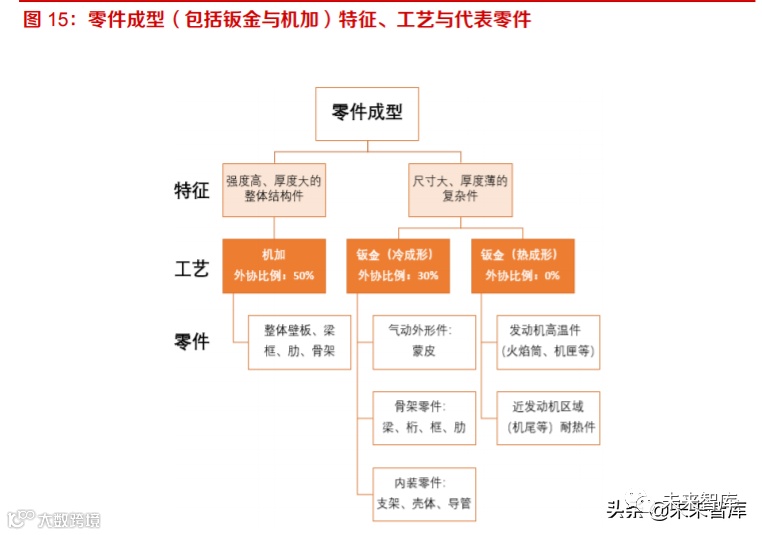 部装作为零部件加工产业链的顶端,由于其较高的涉密层级和技术难度,目前还未实现外部化。
