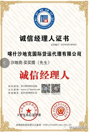 喀什沙地克国际货运代理有限公司是一家从事代理各种进出口货物、保税货物、过境货物、转关货物、暂准进出境货物的报关报检服务以及国际货运代理公司。本公司有专业的报关、报检、装卸人员,经过长期努力和多家知名运输公司、托运部建立良好合作关系。本公司在国外有专业的清关公司可以为您提供一站式服务。本公司本着诚信、专业、高效的经营理念真诚为您服务,希望您的大力支持,一起努力共创佳绩。