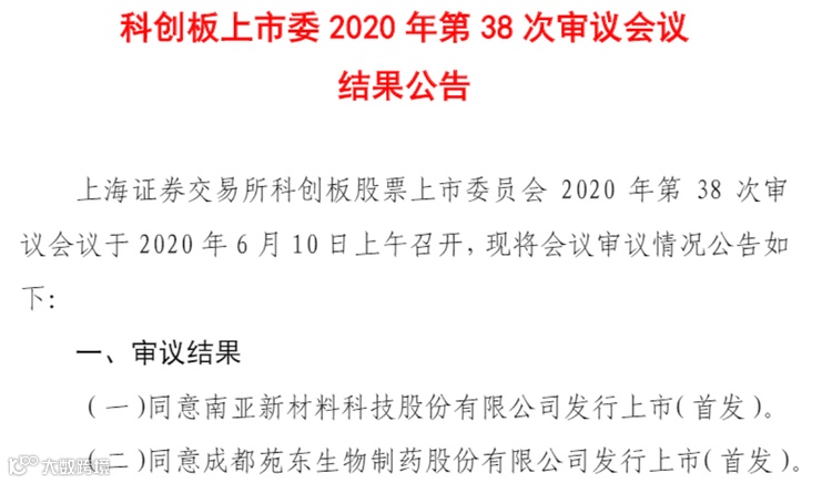 6月10日,上海证券交易所科创板股票上市委员会召开了2020年第38次审议会议,根据审议结果显示,南亚新材科创板IPO成功过会。