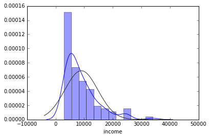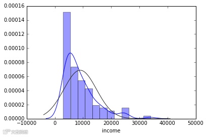 Python的语法就是这么简洁到令人发指。从上述信息我们可以观察到各变量的计数、最大值、最小值、平均值等信息。以income为例,平均值为9010元,中位数为7500元。我们猜想是收入被平均了,如何更直观的看到呢?很简单,我们画个直方图。