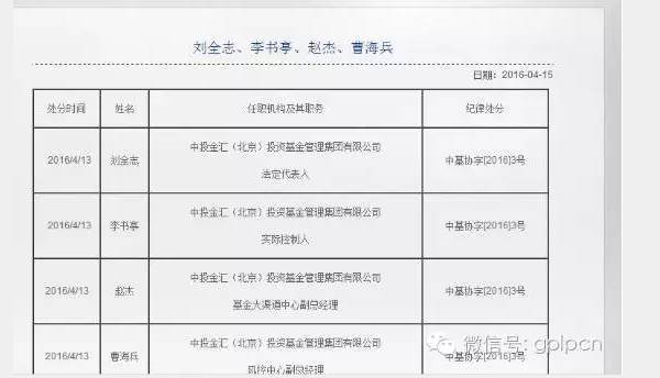 除了将4000多家机构列入异常以外,据GPLP君发现,基金业协会还加重了处罚,对部分PE基金及法人代表进行纪律处分并列入黑名单进行公示,包括中投金汇、中金赛富等公司都榜上有名。