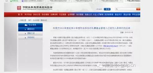 作为一名个人LP,投资人A在2016年3月份曾满怀希望的投资了两家PE,然后异常兴奋的等待该PE基金的超级回报,然而,A小姐还没有开心4个月,就突然在中国证券投资基金业协会的官网上发现,其投资的基金被列入了异常。