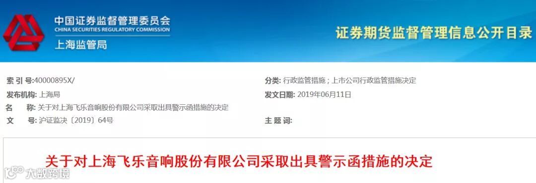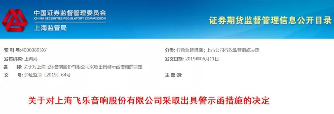追溯到2019年6月11日,上海证监局对飞乐音响开具的一份罚单,或许是遭立案调查的原因。