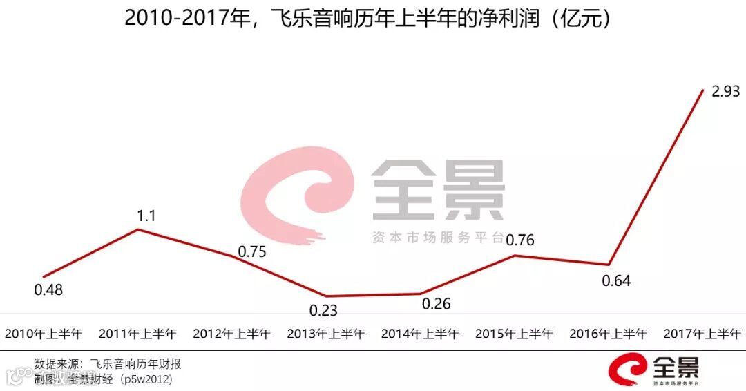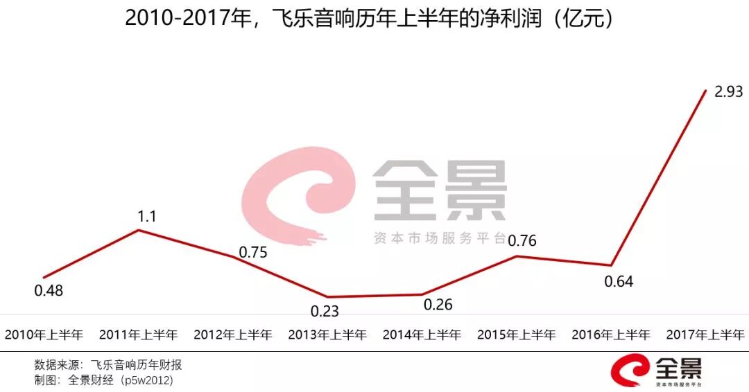 据飞乐音响披露的2017年半年报、三季报显示,净利润突然出现爆发式增长。2017年上半年的净利润达2.9亿元,同比暴增超357%,创下近10年来的新高;2017年前三季度的净利润再度猛增至5.22亿元。