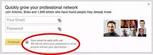 但是在新的智能手机时代,我们还可以做得更好:在iOS和Android上,他们的手机可能已经连接到其他邮箱,因此这些联系人就保存在手机上。所以你要做的就是让用户在手机上下载安装LinkedIn,然后允许访问联系人。不仅摩擦解决了,其他问题也不复存在。
