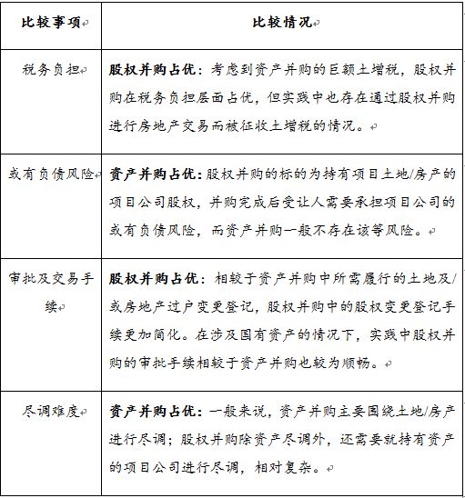 但考虑到资产并购高昂的土地增值税负担(关于房地产并购的税务问题,我们将在下一篇系列文章中具体分析,在此不赘),一般交易双方都倾向于通过股权并购完成交易。