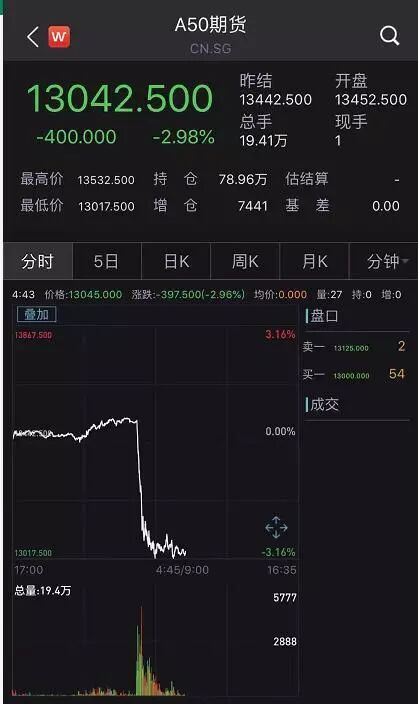除美股暴跌之外,A50期货也直线下挫,一度暴跌2.98%。