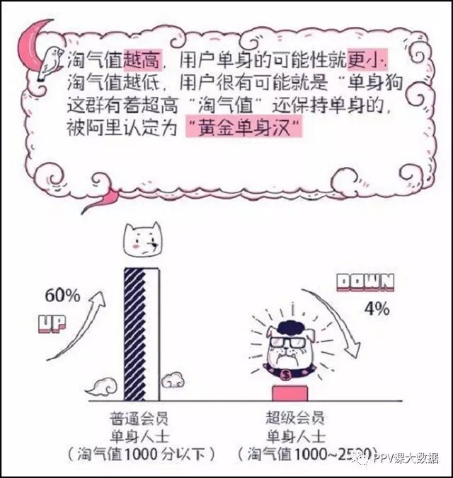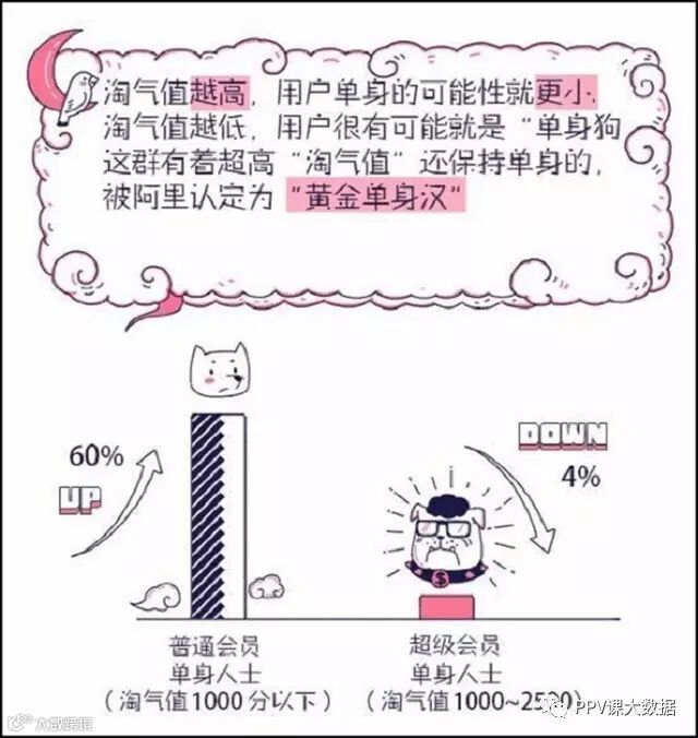 另有数据显示,在普通会员中(淘气值1000分以下),单身人士占比高达60%;而在超级会员中(淘气值1000分-2500分),单身人士占比迅速下降到4%,约520万人。