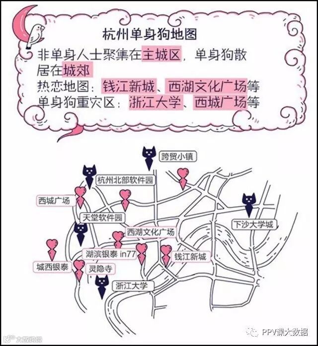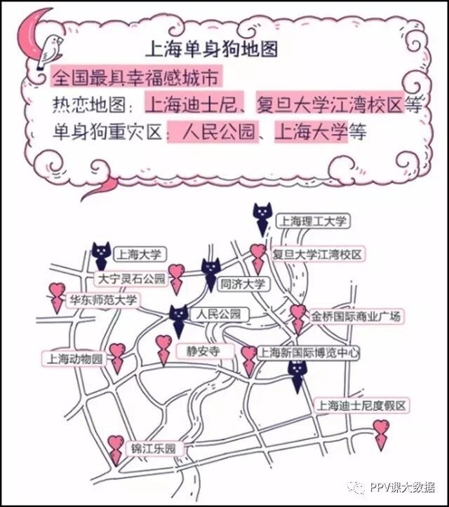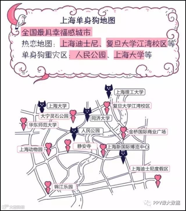 昨天是七夕,单身人士们有回避恋人们的集体秀恩爱,又或者邂逅遇见自己的命定情人了吗?日前,阿里巴巴发布了一份“七夕单身人士生存指南”,根据大数据圈出了单身人士和情侣们的聚集地。
