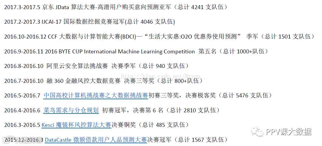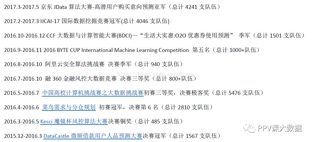 最后是我参加比赛的情况,截止17年6月,天池积分榜排名第五,拿到3次top3,成为天池平台的第七位数据科学家。2年竞赛生涯圆满,至此正式退役。