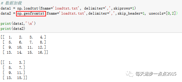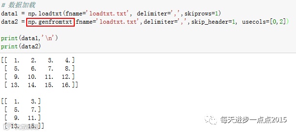 这里个人比较推荐使用genfromtxt函数进行外部数据的读取。切记,loadtxt函数和genfromtxt函数读入数据形成数组,故必须要求读进来的数据一定是数值型数据,否则会报错。