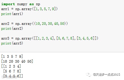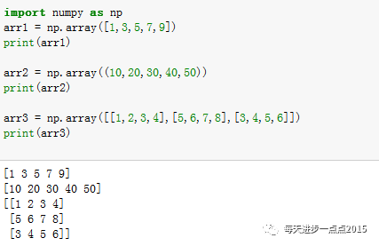 数组的创建可以使用numpy模块中的array函数实现,一维数组只需要给array函数传入一个列表或元组,二维数组则是传入嵌套的列表或元组。具体举例可知: